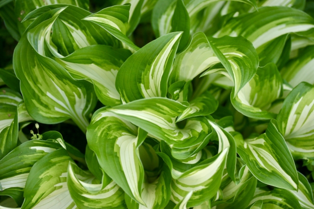 濃淡の緑や白、黄などの斑入り葉があり、庭のシェードガーデンに最適です。