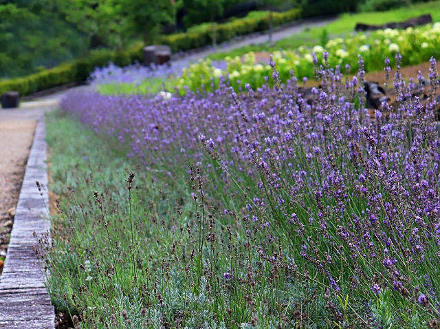 例:ラベンダーやローズマリーを背後に、タイムやミントを前景に。